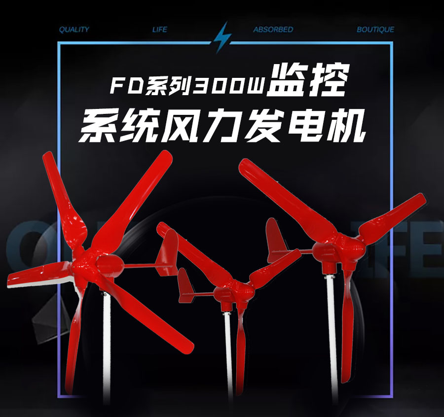 南京歐陸電氣FD系列300W監控系統風力發電機使用套管連接,安全性高,不會發生飛車現象。風葉采用高強度尼龍復合材料,強度高,韌性好,防紫外線,防腐蝕,抗大風,具有良好的氣動性能和獨特的強風失速保護特性。