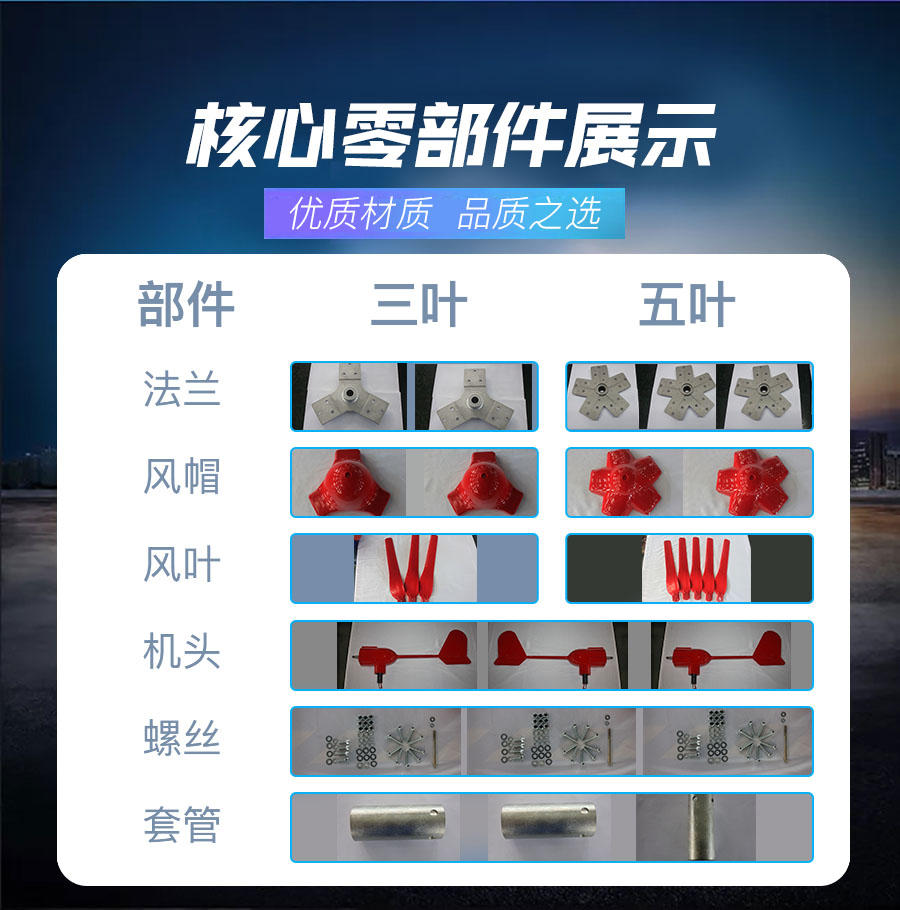1、風葉采用高強度尼龍復合材料,強度高,韌性好,防紫外線,防腐蝕,抗大風。