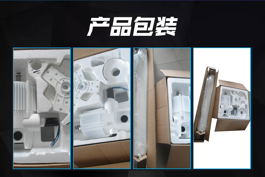 8、采用自動對風裝置,使風力發電機自動調整對準迎風方向,兼顧調向靈敏性和穩定性,風力較大情況下發電機尾翼斜置限速保護風機不受損。