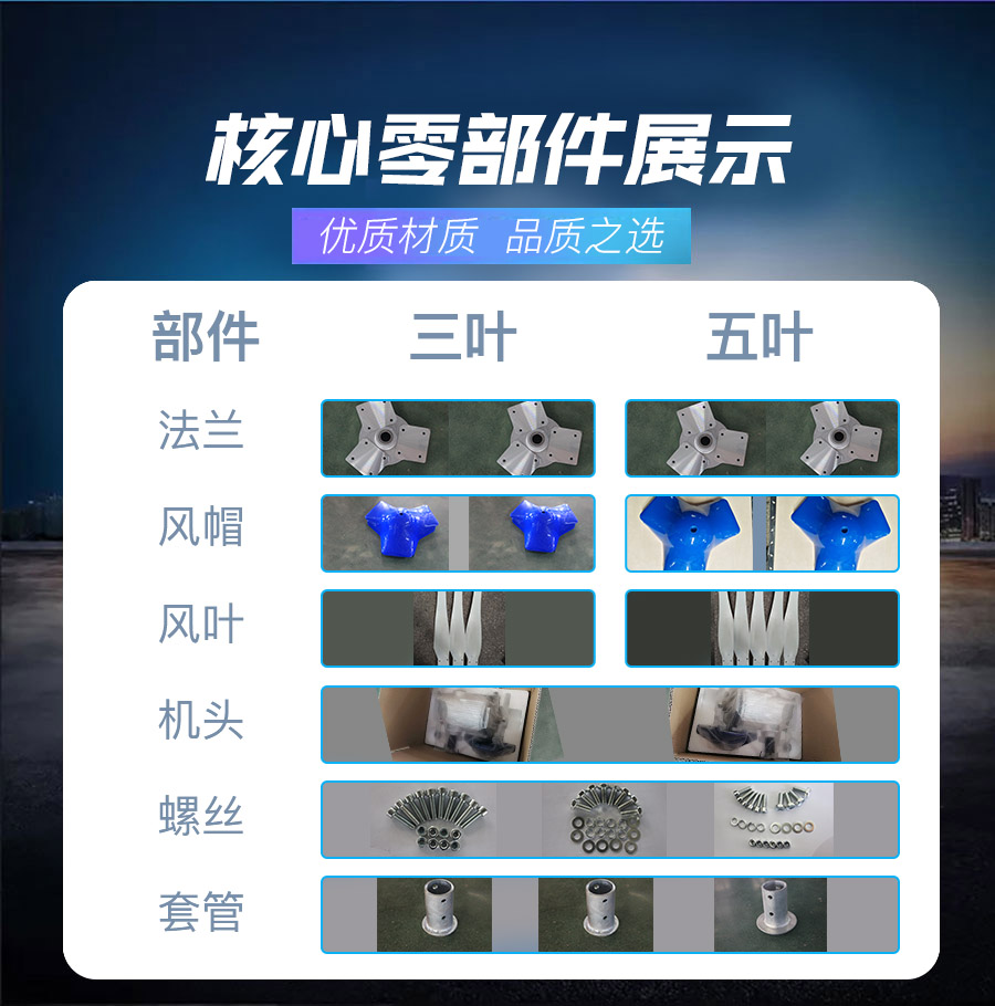 1、風(fēng)葉采用高強度尼龍復(fù)合材料,強度高,韌性好,防紫外線,防腐蝕,抗大風(fēng)。